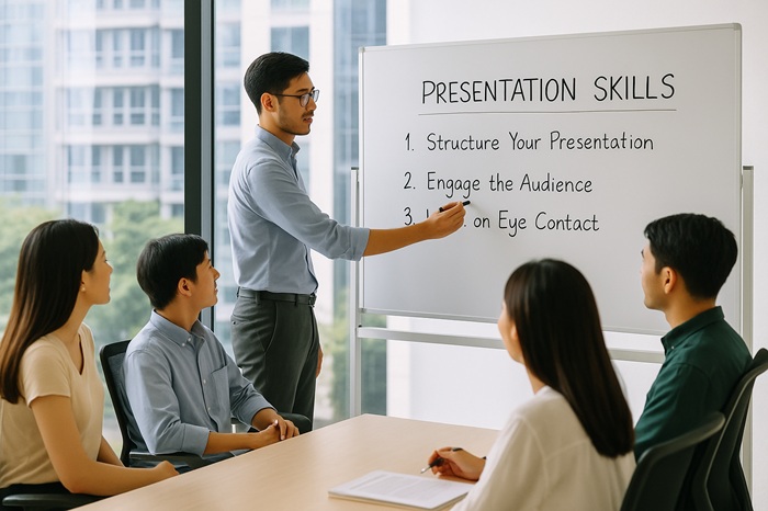Cập nhật xu hướng mới: Các kỹ thuật thuyết trình hiện đại như sử dụng công cụ số, slide chuyên nghiệp, thuyết trình online.